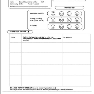 A detailed practical digital logbook designed to reduce overwhelm around appointments, pattern tracking, and managing supports. Paperback also now available on amazon.